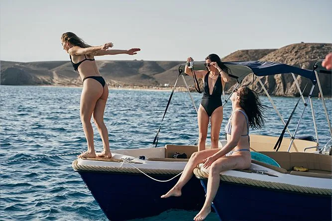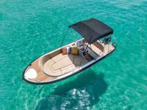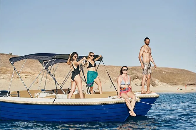 El barco sin licencia más lujoso de Rent a Boat Lanzarote. Para alquilar este barco no necesitas licencia ni conocimientos náuticos. Lo conduces tú mismo, es muy fácil de manejar y totalmente seguro. Ofrece espacio para 5 personas. La espaciosa cubierta de 2 metros se convierte fácilmente en una mesa donde 5 personas pueden sentarse cómodamente. Perfecto para tomar el sol y disfrutar de un baño en las aguas cristalinas de Lanzarote viendo gran cantidad de peces y haciendo snorkel. Equipado con equipo de snorkel, una escalera de baño que facilita la entrada y salida del agua, y un toldo que ofrece una magnífica protección solar si lo deseas. Política de cancelación: reembolso del 100% hasta 24 horas antes. El combustible está incluido en el precio.